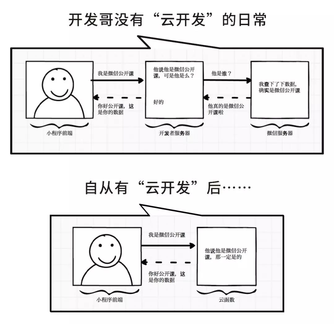 「云开发」本质上是一个 Baas(Backend as a Service)。Baas 是一种新型的云服务,主要是为了为移动和 Web 应用提供后端云服务,包括云端数据/文件存储、账户管理、消息推送、社交媒体整合等。BaaS 是垂直领域的云服务,它作为应用开发的新模型,可以降低开发者成本,让开发者只需专注于具体的开发工作。而这一切,被腾讯集成在了小程序上。