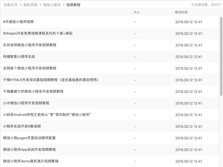 我还整理了一些小程序的学习资料,涉及教学视频、源码、工具插件等等。在公众号后台回复关键字「小程序」,免费领取,截图只是冰山一角。