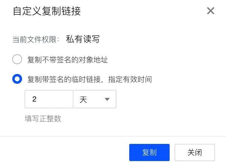 COSBrowser提供了一键生成分享链接,可设置分享有效期,到期后分享自动失效。