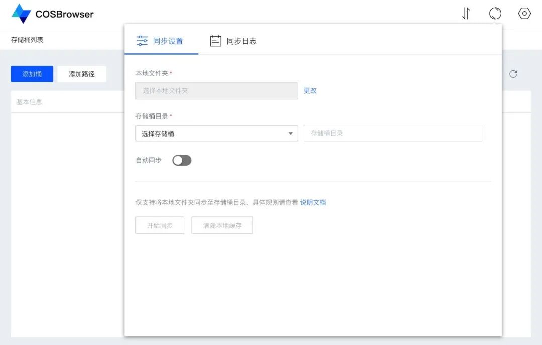 COSBrowser支持电脑本地端向云端的单向同步,本地文件夹只要有新增文件或文件变更,都会自动同步到COS中。