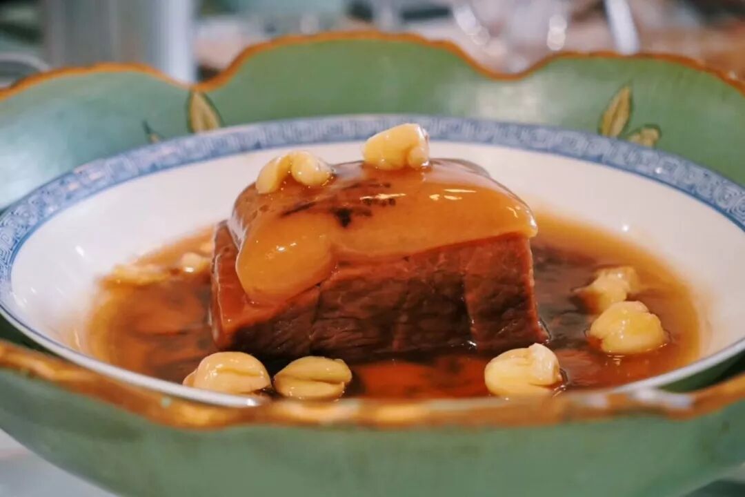 另一道外头罕见的“特一级厨师考试菜”,选细嫩的羊里脊肉切薄片,加蛋清和淀粉腌制后入锅断生,再浸入蛋液后“塌“制成型。这道菜食羊而不见羊,蛋香肉嫩,香气相性增益,简洁但是满足感极强,也是秋冬季节的时令。![]()