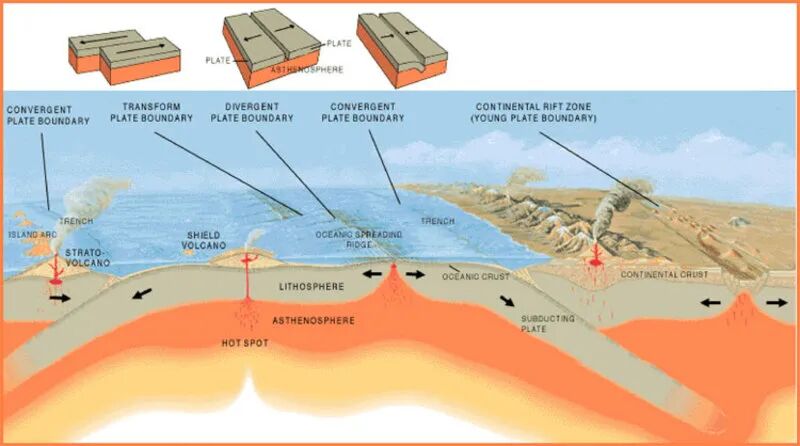 消亡边界又叫汇聚边界,是两个板块激情碰撞火花四射,世界上大部分破坏性的地震都发生在消亡边界上。