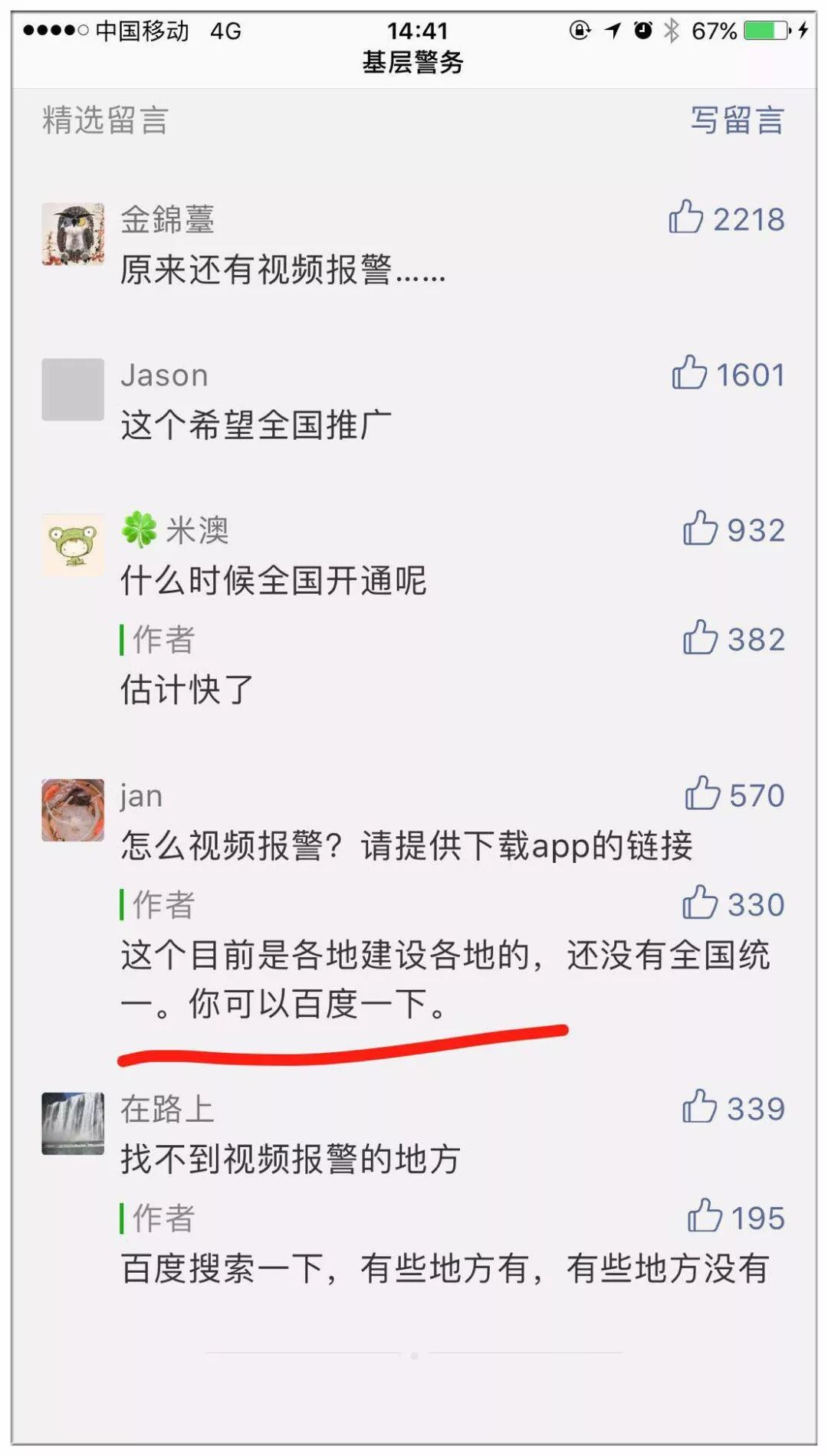 在《她用一招,吓退了企图不轨的滴滴司机!》的文章中,没有提供具体实现视频报警的渠道,只是让网友“自行百度”,导致该文章的网友评论中出现了各种说法。