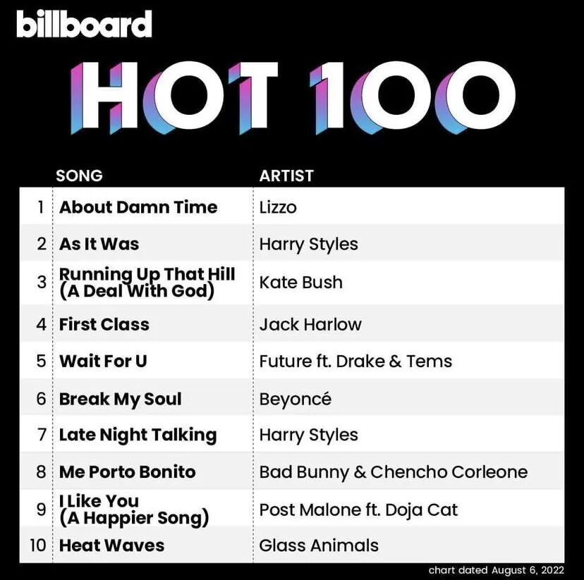周二,Billboard 单曲榜公布,Lizzo 凭借单曲