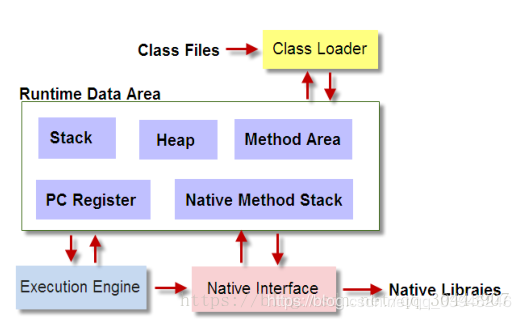 总结:整个 JVM 框架由加载器加载文件,然后执行器在内存(运行时数据区和直接内存)中处理数据,需要与异构系统交互是可以通过本地接口进行。