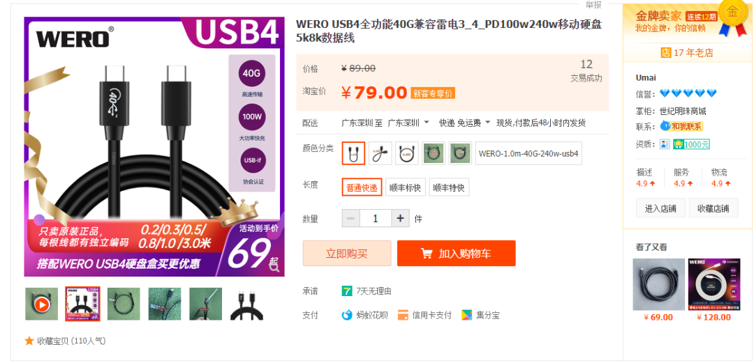 USB4通用性更强,要求更低,性价比超高,本次参加团购的尺码有0.2/0.3/0.5/0.8/1.0米 100w,还有1米 240w,尺码齐全,欢迎选购。
