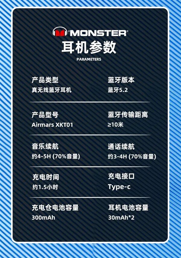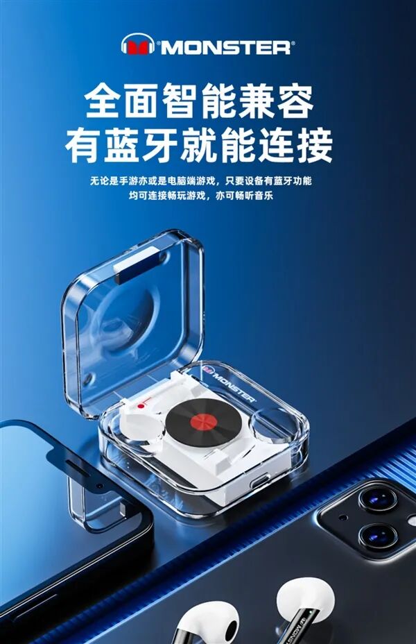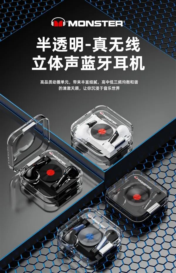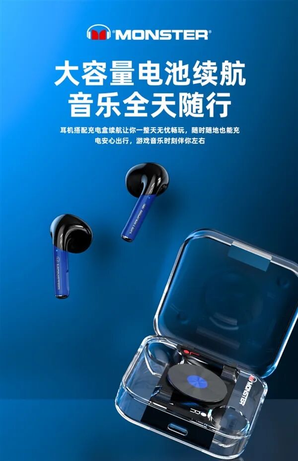 天猫MONSTER魔声安诺专卖店商品,正品保证,支持七天无理由退换,请查看最新评价后再入手~。产品可选四种颜色,是真无线立体声产品。采用高品质全金属振膜动圈单元,单双耳无缝切换,开盖即联,升级蓝牙5.2芯片,连接更稳定,语音通话不卡顿不断连,ENC通话降噪。游戏模式下将加强环境噪声处理,延迟还更低,耳机搭配充电盒,充电时间1.5小时,约能维持4小时通话续航或5小时音乐续航。【广告】本文用于优惠促销信息分享,结果仅供参考。文章来源:快科技相关阅读:1、JBL T280 TWS PLUS真无线蓝牙耳机 2、233621 PEARL ll Pro 真无线主动降噪蓝牙耳机