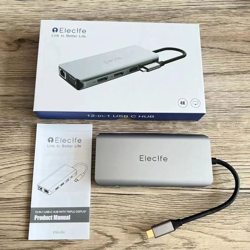 最近有一批新到货的扩展坞,跨境电商转内销,Elecife品牌12合一扩展坞,可为C口设备拓展多种接口,让生活更方便,办公更轻松。发车价优,赶紧上车。单个139元包邮 ,2个275元包邮,3个408元包邮普通地区,进店先领店铺优惠券后,再拍下自动满减,如未领到可联系客服手动改价。扩展坞接口全面,接口类型包括:双 HDMI 端口(分辨率:4K/30Hz,4K/60Hz),VGA (1080P/60Hz),100W PD 充电端口,RJ45千兆以太网端口,双 USB 3.0(5Gbps 数据传输端口)和双 USB 2.0(480Mbps),Micro SD 和 TF/SD 卡插槽,3.5mm 麦克风/音频。可用于数据传输,显示扩展和充电的扩展坞。超高清 4K 和三重显示:扩展模式或镜像模式使用 USB-C 适配器的HDMI 端口显示你的屏幕,并将 4K 超高清或全高清 1080P 视频直接流式传输到高清电视,监视器或投影仪,享受影院级视觉盛宴,且支持 Windows 和 Mac OS 。拼贴模式:拼贴模式仅支持Windows 。注意:仅在 Windows 下同时支持 SST 和 MST,Mac OS 仅支持 SST。