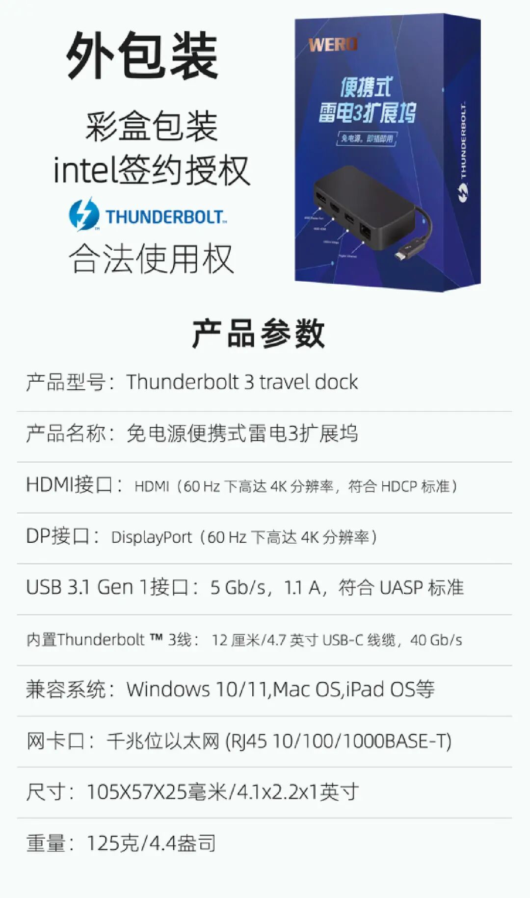这在intel认证过的雷电扩展坞里是超级便宜的,价格还不到一根1米雷电4认证数据线的价格!有需要的朋友别错过了!