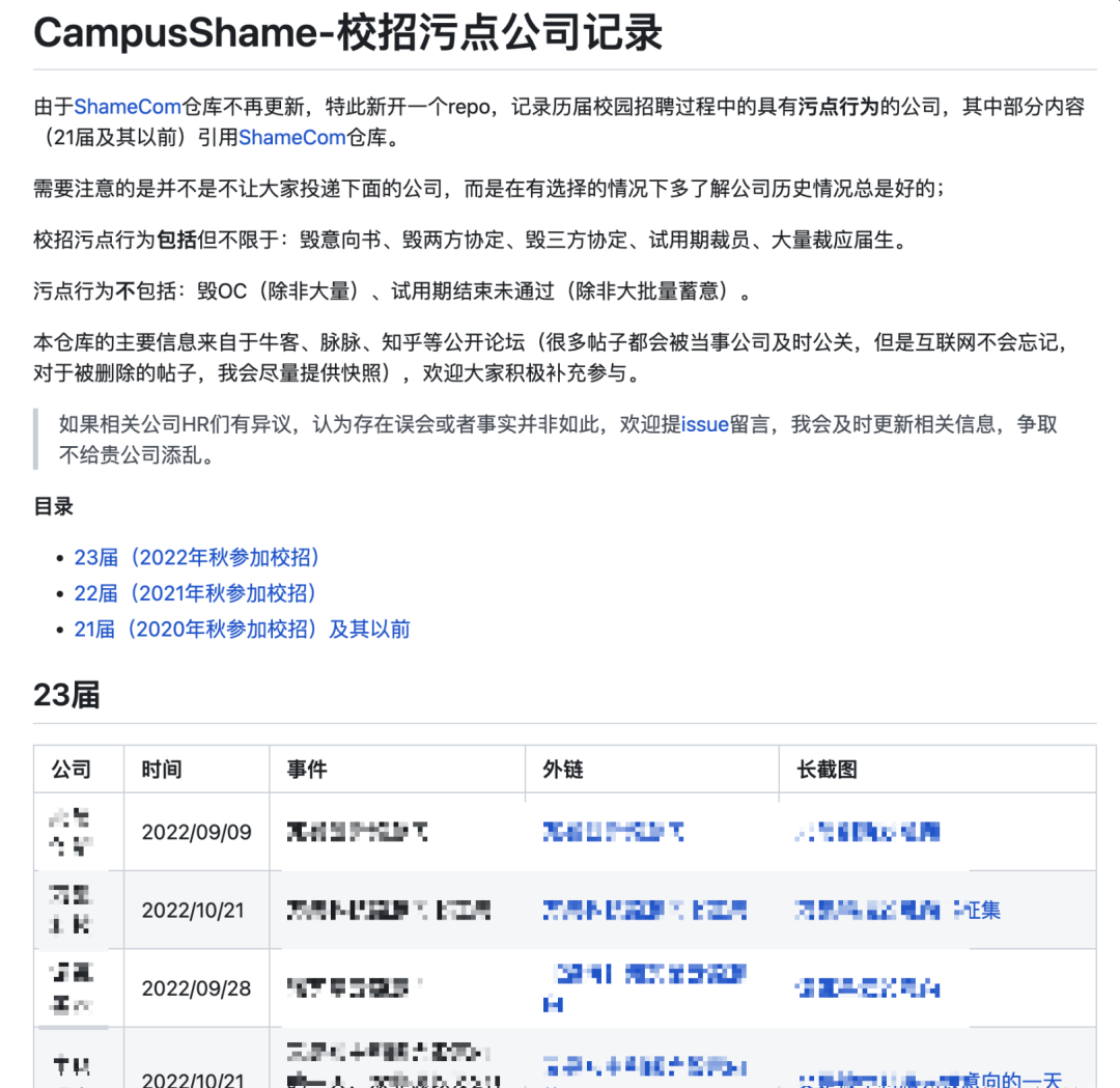 老读者应该也有印象,去年我就发过一篇文章,标题叫《校招黑名单》,当时就有个同学把历年毁约的公司列了一个清单,放在 GitHub 上,但很快,这个仓库就迫于各方的压力,下架了。