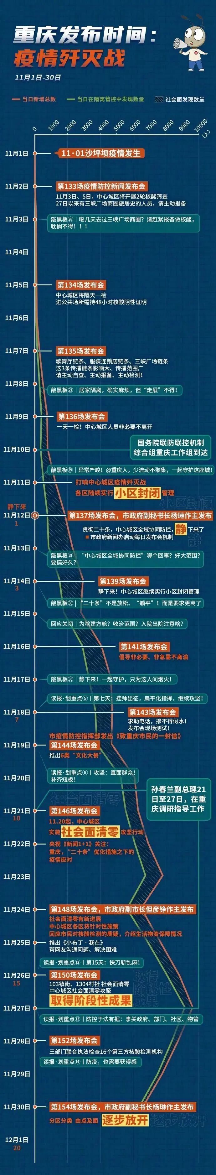 重庆发布长图11月1日-30日疫情歼灭战,汇总防疫政策由封闭管理走向逐步放开。