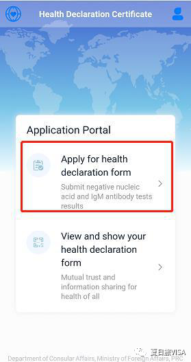 3. You need select “Apply for health declaration form” then register by your own e-mail after