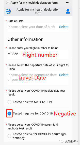 (Attention that the declaration only can be done after you get your own “Nucleic acid test report”