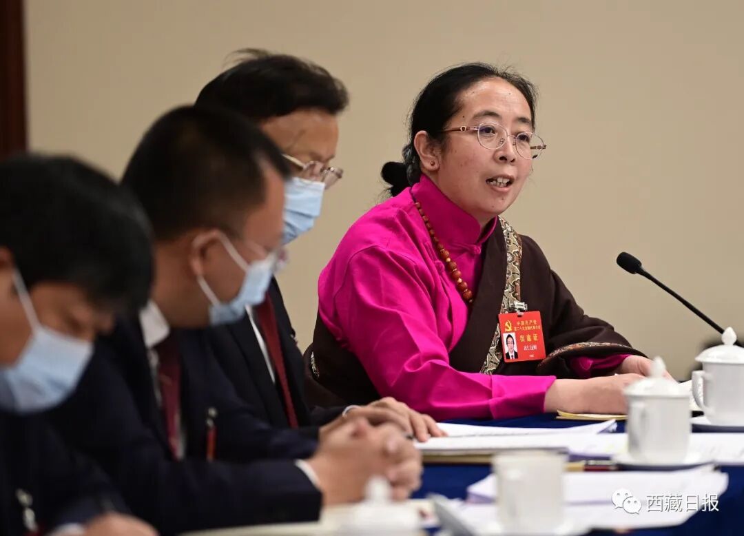 白玛赤林、洛桑江村、严金海、庄严、陈永奇、许成仓、斯朗尼玛、次仁顿珠、卓嘎、旦增顿珠、西洛卓玛、亚夏、次仁拉姆等代表围绕党的二十大报告踊跃发言、畅谈学习感受,现场气氛十分热烈。大家说,聆听习近平总书记所作的报告,倍感振奋,现场一次次掌声充分体现代表对报告的高度赞同和对以习近平同志为核心的党中央的衷心拥护。报告高屋建瓴、思想深邃、气势恢宏,鲜明提出一系列具有开创性的重要思想、重要观点、重大战略、重大举措,擘画了以中国式现代化全面推进中华民族伟大复兴的宏伟蓝图,通篇闪耀着马克思主义真理的光芒,是全面建设社会主义现代化国家、全面推进中华民族伟大复兴的政治宣言和行动纲领。