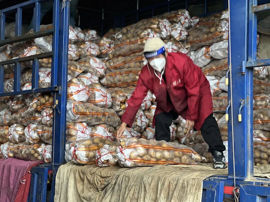 周谷堆市场经营和管理人员加强健康防护,主动闭环管理,保障市场物资供应。王之源 摄