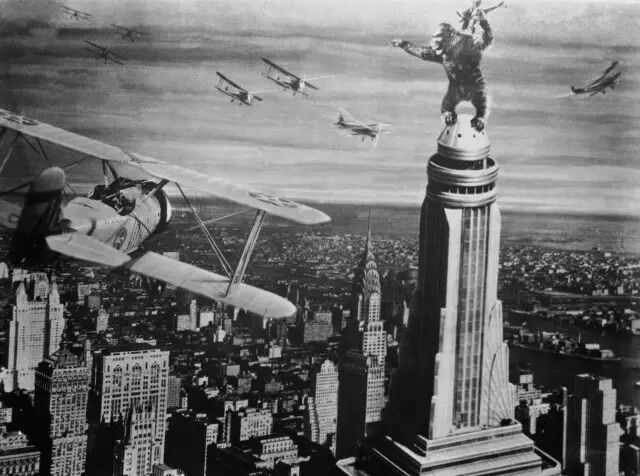此时的金刚,还是“美女与野兽”的升级版。影片的重心,还是人与兽的“不可能的恋情”,应该说,用体形巨大的金刚取代了个头适中的野兽,自然而然地具有了更强的视觉效果,而结局的悲壮一早已注定,使得它的悲剧性超越了《美女与野兽》的大团圆结局,故事有了更斩截的力量。因此取得了巨大的成功。