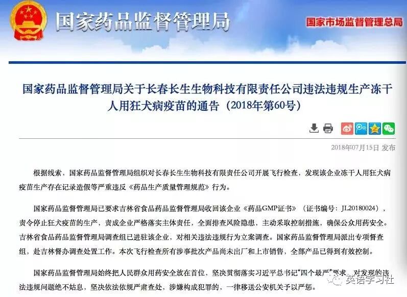Changchun Changsheng’s parent company, Shenzhen-listed Changsheng Biotechnology, has made a public apology and voluntarily recalled all their rabies vaccines available at the market.