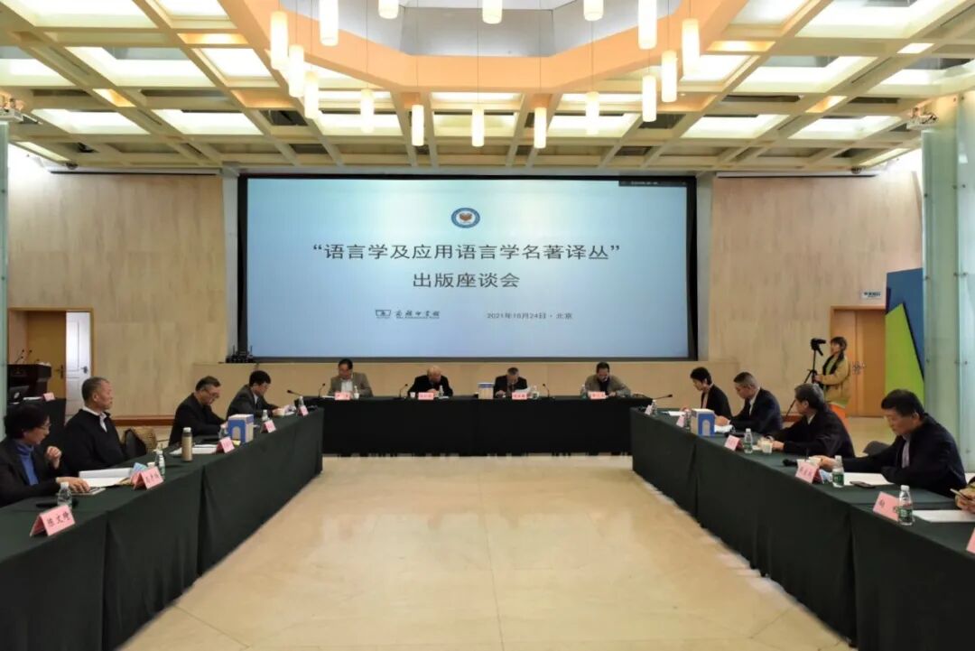10月24日,“语言学及应用语言学名著译丛”出版座谈会暨“汉译世界学术名著丛书”第二十辑语言类名著专家论证会在商务印书馆成功举行。“名著译丛”专家委员会顾问、北京大学教授胡壮麟,北京大学教授陆俭明,“名著译丛”专家委员会委员、北京语言大学教授马秋武,出席座谈会并发言,商务印书馆党委书记、执行董事顾青感谢语言学界专家对于本套译丛的鼎力支持。来自中国社会科学院、北京大学、北京外国语大学、北京航空航天大学、北京理工大学、中国石油大学(北京)等高校和机构的专家现场参与座谈会及专家论证会,还有来自教育部、清华大学、中国人民大学、北京语言大学、广东外语外贸大学等机构和院校的十余名专家学者通过视频或其他方式参与相关活动。会议上下半场分别由商务印书馆总编辑陈小文、英语编辑室主任马浩岚主持。