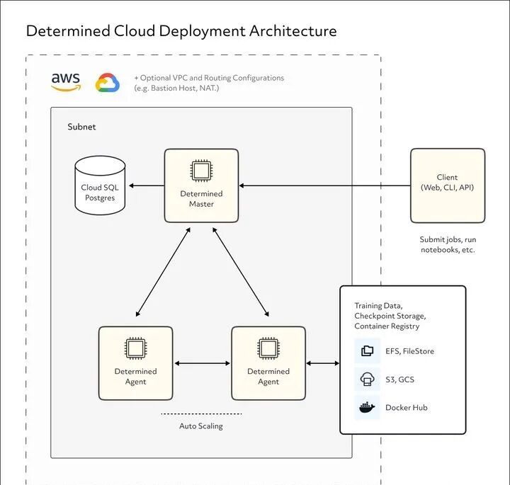 先放一个Determined的AWS部署图,本地部署结构也是类似的: