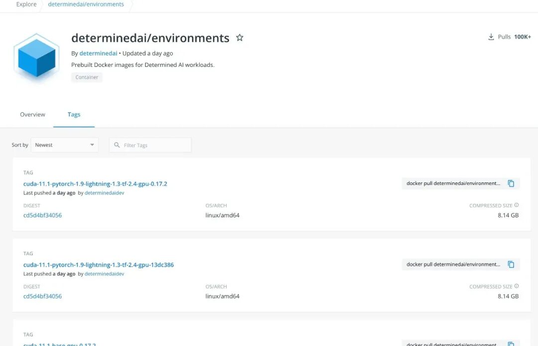 由于Determined官方其实给出了很多个版本的cuda和框架的组合,这里先给出链接供大家直接使用: