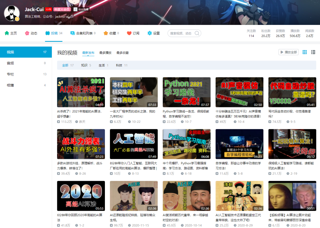 不过我做视频比较慢,说来也惭愧,一年多的时间里,更新了不到 20 个视频。