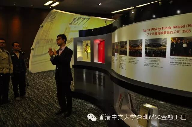 10月12日上午,师生一行首先抵达位于香港中环的香港证券交易所。在工作人员的引导下,老师、同学们在一楼报告厅观看了港交所宣传视频,了解港交所的发展历程和未来规划。随后,香港证券交易所环球市场部的黄志伟先生为同学们带来了Introduction to Listed Fixed Income and Currency Products的演讲,介绍了上市固定收益和货币产品的多种分类,简述了如何通过固定收益和货币产品规避市场风险。师生还在工作人员陪同下参观了”传说中”的港交所大厅,来看看都有哪些精彩的花絮吧!交易大厅内部 瞬间带我们大家穿越回了90年代的商战港剧!同学们都争相与上市铜锣合影,对于金融工程的大牛们,应该都视敲响上市铜锣为人生的终极目标吧下午,师生们来到位于香港国际金融中心56楼的香港金融管理局。同学们参观了金管局的展览馆,并听取了有关香港不同时期货币政策、不同发行银行港币以及如何鉴别真伪港币的介绍,同学们都听得兴趣盎然,获益匪浅。一天的港交所和香港金管局参访活动时间虽短,但干货多多。我们项目也期望通过此次金融机构实地探访的活动,让金融工程的优秀学霸们更深入地了解金融机构的运作、加深对金融工程的实践认知,真正做到学有所获、学以致用。
