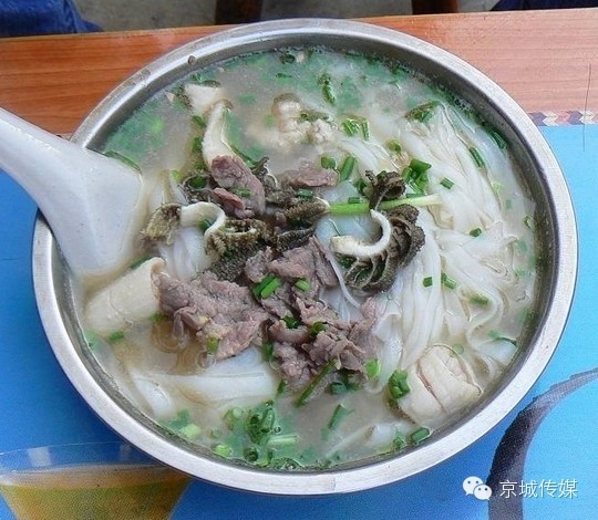 超记牛腩粉属于梧州最老字号的粉店之一。有三十年历史了。粉很滑、很薄。