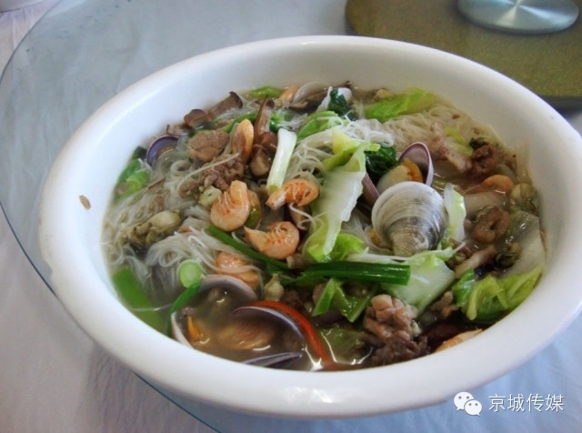 顾名思义,就是用海鲜来做配菜或者汤底煮出来的米粉,一般到过北海的游客都会吃上一碗海鲜粉,既过了一把海鲜瘾,又能填饱肚子。北海人有一个雅号,猫象。北海人猫象,是说北海人餐餐离不了鱼。其实,外地人到了北海,也得变成猫象。