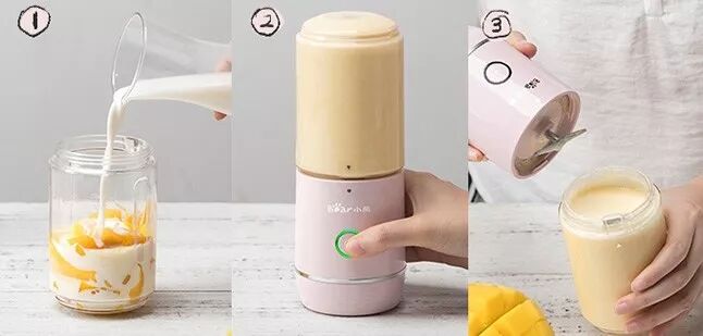 这个果汁机粉粉的外表,迷你的身姿,40秒榨汁,还能当做充电宝,真的值得人手一个随身携带,让你随时随地喝上新鲜果汁。