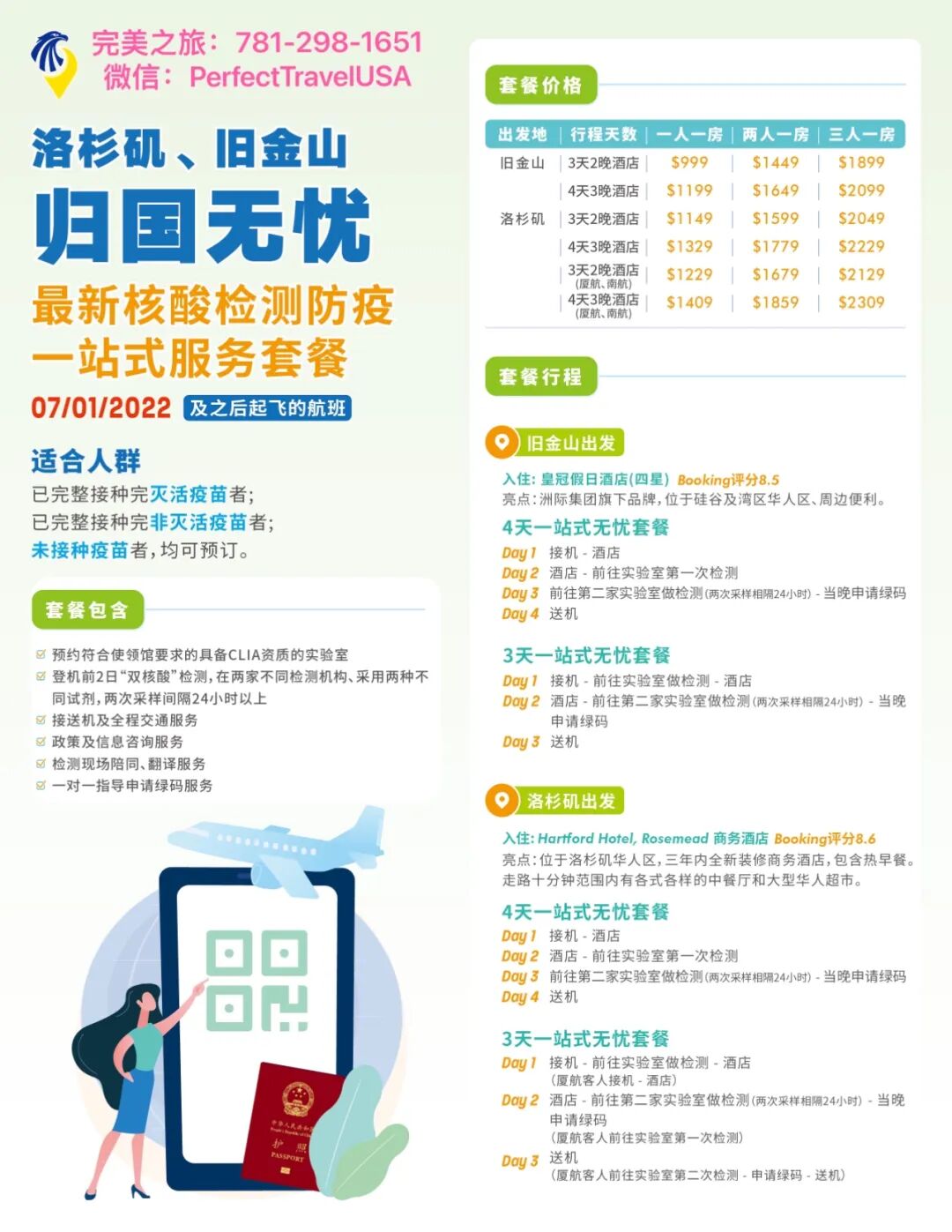 完美之旅提供美国各地回中国核酸检测一条龙服务:预约检测、接送、酒店、陪同翻译、健康码申请指导