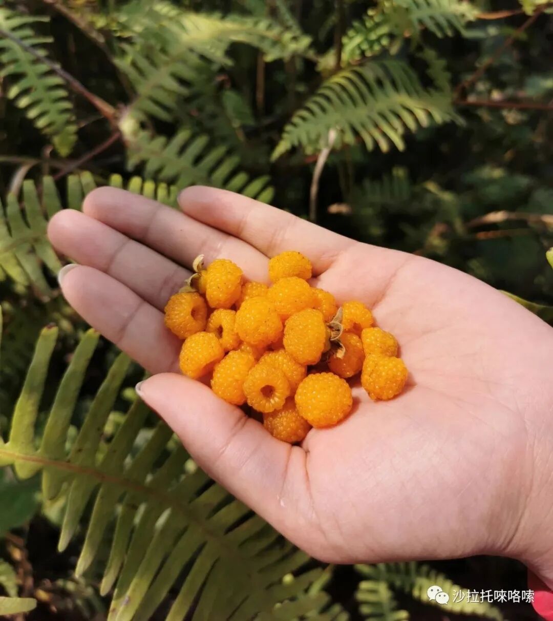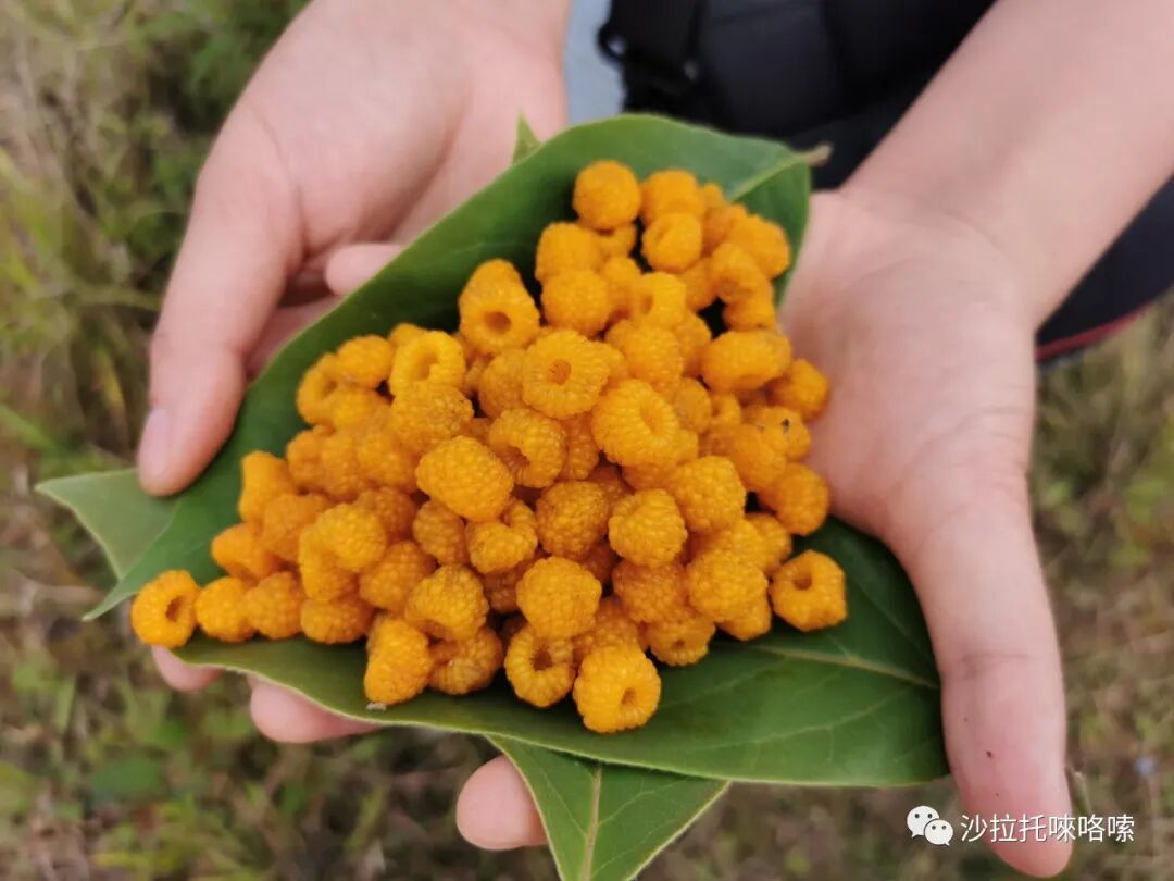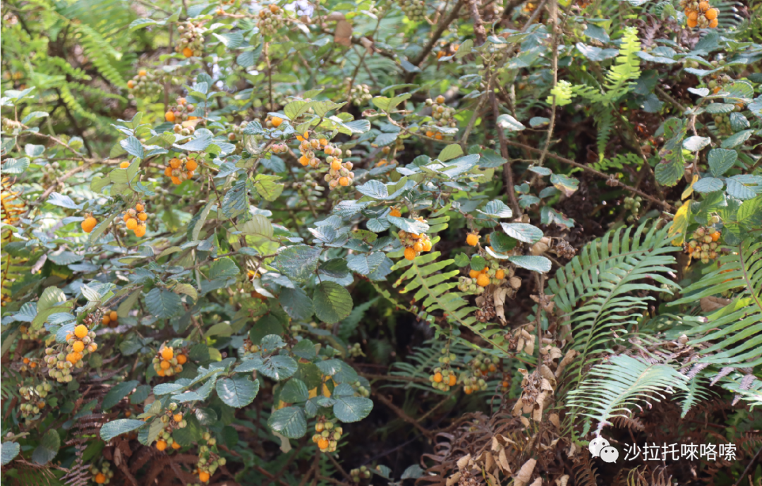 每年四月,只要你步入沙拉托山间,经常就会不经意地在路边或者是一些高而陡的山坡上,看到很多带刺的黄泡,这种有着明亮鲜艳黄色的野果成簇成团的结满枝头。