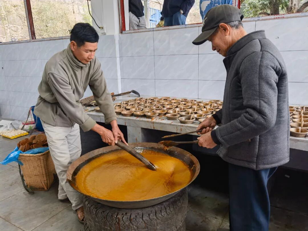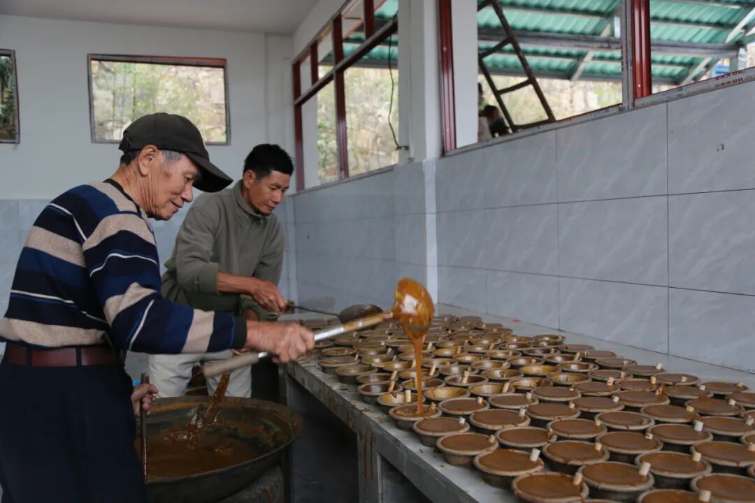 因为是纯糖汁熬制无添加,所以成型基本只能靠师傅的手力和舀得恰到好处的量。他们也深深爱着榨糖这门手艺,每到榨糖季,基本在榨糖房里把关,传授经验。