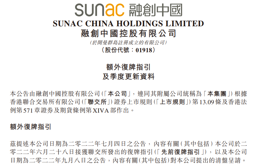 同时公告再次明确,“本公告所载资料仅根据本公司现时可得的资料作出。本集团本年度实际经审核业绩可能与本公告内所载数据有所差异”。2021年度业绩推迟大半年终于要发布了,对于融创中国来说,无疑是好事。没有这份业绩公告,复市是没希望的。此次消息的发布,我们至少知道,离股票恢复交易,又近了一步。当然还有系列财报需要发布、以及清盘呈请等问题需要处理。在9月15日,融创中国曾公告宣布,接获了港交所的额外复牌指引。融创中国当时表示,公司正采取适当措施以符合复牌指引及相关上市规则,并将适时刊发进一步公告,让公众知悉最新进展。另外,杠杆地产看到公告说,融创中国已委任香港立信豪德会计师事务所为公司的新核数师。根据此前融创中国的公告,核数师正在审核截至2021年度的业绩。由于延迟刊发2021年度业绩及寄发2021年度报告,2022年中期业绩的刊发及2022年中期报告的寄发也有所延迟。融创中国表示,公司董事会及管理层将继续与核数师密切合作,在实际可行情况下尽快刊发2021年度业绩及年度报告、2022年中期业绩及中期报告。公司将适时发布进一步公告,以通知股东及潜在投资者上述财务数据的刊发进度。2022年9月,一则突如其来的清盘呈请“内幕消息”,将低调已久的房企大佬融创中国拉回C位。据披露,2022年9月8日,融创中国受到陈淮军向香港特别行政区高等法院提出的,对融创中国的清盘呈请,内容有关其未偿还其持有的优先票据,涉及本金2200万美元及应计利息。对此,融创中国的态度是:董事会认为呈请并不代表其他持份者的利益,并可能损害融创中国的价值,因此将寻求法律措施坚决反对,并采取一切必要行动保障其合法权利。此前,杠杆地产发现此次申请清盘呈请的呈请人陈淮军,似乎也是个有故事的人。某度百科的资料显示,其为安徽人,现任安徽金大地房屋开发有限公司总经理。在媒体2013年的一篇报道里,陈淮军自述祖籍安徽桐城,成长于淮南,从小在部队大院长大。毕业后先到企业工作,父亲当年是当地一家药厂的厂长,又是安徽劳动模范。可他自己觉得这种按部就班的人生没有前途,总想做点什么。从企业出来后,他做过药品销售员、开过塑料厂、做过药品经营。1995年,陈淮军在淮南买了一块地,想建一家专科医院,盖医院只要4000平米,但他买了6亩地,只要卖掉一部分。也正是这次偶然的机会让他发现地产领域大有可为,所以放弃了建医院的计划,转型做地产项目。安徽的杆友可能对金大地熟悉,其成立于1997年,是一家专业从事投资、房地产开发、商业运营、物业管理和生态农业的综合性企业集团。企查查显示,安徽金大地房屋开发有限公司法人、实控人、最终受益人均为陈淮军,目前处于注销状态。除了安徽金大地,陈淮军关联的其他部分公司目前有几家仍在存续,其中涉及影视传媒、投资管理、商业发展等。根据披露,2021年底,朗诗绿色生活全资附属公司还收购一组安徽物业企业股权,初步现金代价为1.07亿元,该安徽物企为与陈淮军全资持有公司。根据涛哥杂谈,2016年12月,安徽省合肥原市长张庆军被“双开”。那之后,通过公开渠道看到的陈淮军总经理的“足迹”已经远在加拿大。比如合肥市桐城商会2018新春联谊会,远在加拿大的陈淮军会长发来视频讲话,感谢各界领导一直以来对商会工作的关心和厚爱;以及参加加拿大列治文农场主协会举办的“夏日农庄BBQ”等。而2015年,陈淮军还在海南三亚参加了“中城联盟董事长新春战略研讨会暨新春家宴”,与十多位房企掌门人共话2015年房企发展之路。总而言之,金大地为何突然低调,“掌门人”为何突然跑到境外,我们外人看来比较奇怪。通过简单的资料介绍,可以看到,陈淮军不简单,清盘呈请的问题融创中国要小心应付。此外,在9月份的公告里,杠杆地产看到融创中国说:“与境外大型机构债权人的沟通及相关工作已取得相关进展,并将以今年年底前为目标,向市场公布最终债务重组方案条款”。有消息说,融创中国筹备对其境内的债券进行整体重组,相关重组条款正在进行磋商之中,或涉及融创旗下存续境内债券及关联ABS,规模合计约154亿元。如果进展顺利,融创将成为继富力、龙光后,第三家进行境内债整体重组的房企。2022年一开始,融创中国就意识到经营、销售、债务困难。2022年3月21日,融创中国发布盈利警告,称基于截至2021年12月31日止年度未经审核管理账目的初步审阅以及现时可得的资料,预期本年度其拥有人应占溢利较去年下降约85%,核心净利润较去年下降约50%——上文杠杆地产有写。6月30日,融创中国表示,由于未能与罗兵咸永道就完成2021年度业绩审核工作的时间表达成共识,因此委聘另一家外部核数师在切实可行的情况下尽快完成审核工作。此后其聘任香港立信德豪为新核数师。11月16日,融创中国公告称,于当日的高等法院聆讯中,高等法院颁令将呈请聆讯延期至2023年6月14日。然后就是文初杠杆地产写的,日前融创中国公告披露,将于12月8日开董事会,考虑和批准该司2021年未经审核的年度业绩。到了11月30日,媒体注意到工商信息显示,泛海建设控股有限公司(下称“泛海建设”)股东出现变更,融创房地产集团有限公司持股比例从100%下降至10.322%,新增两名股东中信信托有限责任公司、芜湖华融资本创誉投资中心(有限合伙),分别持股64.678%、25%。据了解,泛海建