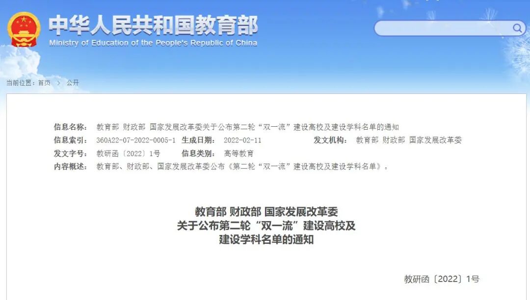 根据国务院《统筹推进世界一流大学和一流学科建设总体方案》,以及教育部、财政部、国家发展改革委《关于深入推进世界一流大学和一流学科建设的若干意见》和《统筹推进世界一流大学和一流学科建设实施办法(暂行)》,经专家委员会认定,教育部等三部委研究并报国务院批准,现公布第二轮“双一流”建设高校及建设学科名单(见附件1)和给予公开警示(含撤销)的首轮建设学科名单(见附件2)。