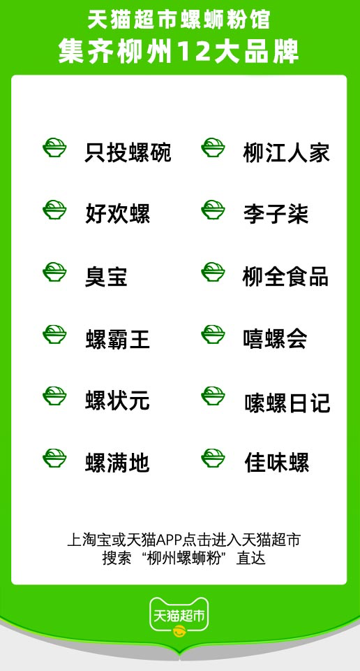 天猫超市首次开设地方特产馆 12大柳州螺蛳粉品牌入驻