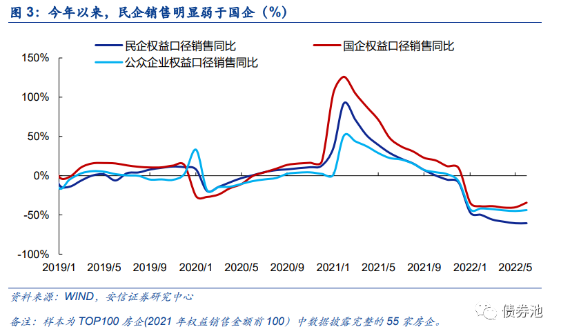 当前融资需求明显偏弱可能主要与居民长贷疲软有关。2020年“武汉解封”后,新增居民长贷占新增国内贷款的比例迅速恢复至2019年30-35%左右的中枢,但2022H1的月度均值只有7.5%,甚至低于2020M2的7.7%,5-6月虽然有所回升,但6月仍不足15%。