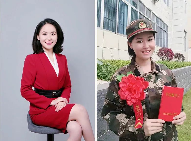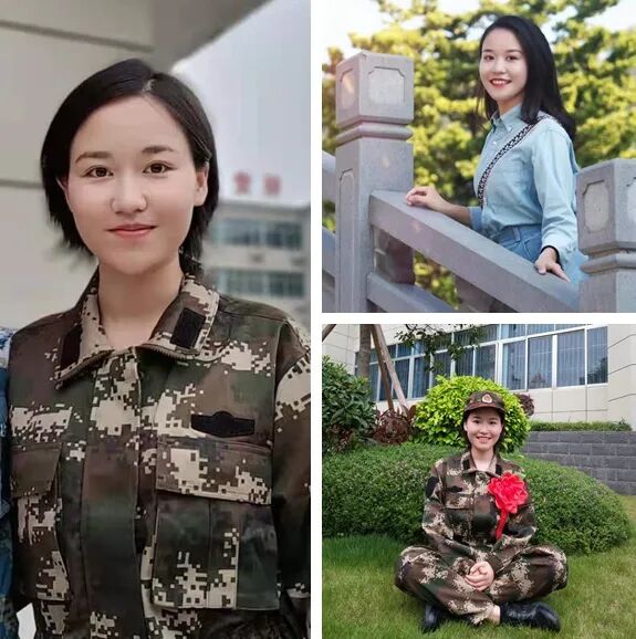之前的长发照(右)为当兵剪了短发(左)