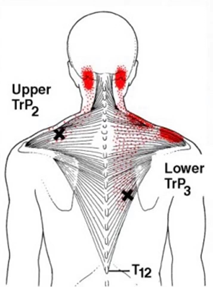 Often you'll feel like having knots in your muscles which are painful when you press on them. These knots are also known as trigger points. Sometimes, when you press on them, you will also feel pain or other sensation (e.g. numbness, pain, and tingling) in other parts of your body. If this is reproducing the pain that you normally have, then it is very likely that the cause of your pain may be originating from this trigger point.Upper Trapezius muscle (TrP2) refers to pain into the base of the skull