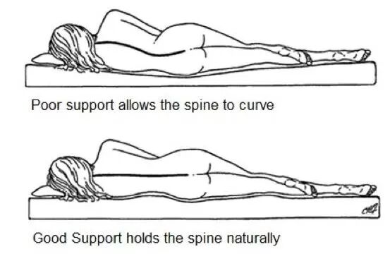 When choosing a mattress, you must consider the support it gives your spine – your spine should not be left with such a dramatic curve in it when you are lying down. It must be relaxed, but in a straight line, with no pressure being put on any part of it.