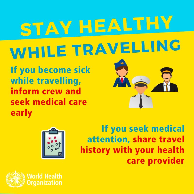 Always perform respiratory hygiene and hand hygiene. Stand or sit as far away from others as possible (at least 1 meter) when in transit and when in the healthcare facility.