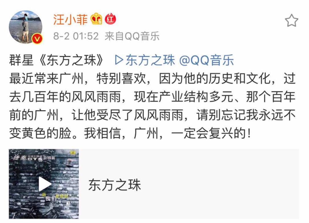 例如,他曾发过一条“复兴广州”的微博,长这样——