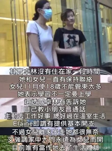 有媒体致电吴绮莉询问小龙女离家出走的事,吴绮莉就表示:她也很无奈,吴卓林已经有一段时间没有住在家里了,但是一直和她有联系,而且小龙女马上就满18岁了,不可以管她太多。