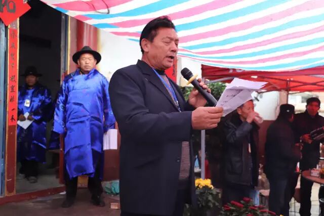 主持人董立春先生致词:尊敬的族长及各位宗亲,大家好!时值2018年农历戊戌年十月一号,我们在这里举行隆重的祭祀仪,追念先祖隆恩厚德。我非常荣幸的主持今年的祭祀活动。首先,请允许我代表全家族的亲人们向特邀嘉宾表示热烈的欢迎和诚挚的问候。祭祖仪式即将开始,请各位宗亲们有秩序的站立就位,保持安静,不要大声喧哗。