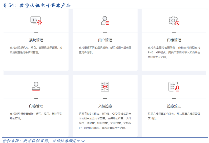 数字认证算是电子认证、电子政务龙头,该公司的主营业务是数字证书服务,主要是为用户提供数字证书的生产和管理。