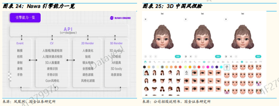 2D能力包括人像美化、贴纸、镜头特效、风格化滤镜等;3D能力中主要涵盖3DAvatar、3D贴纸、AR面具、场景渲染等,其中部分能力已达行业头部水准。