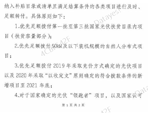 公告提出,优先足额拨付第一批至第三批国家光伏扶贫目录内项目(扶贫容量部分);优先足额拨付50kW及以下装机规模的自然人分布式项目等。