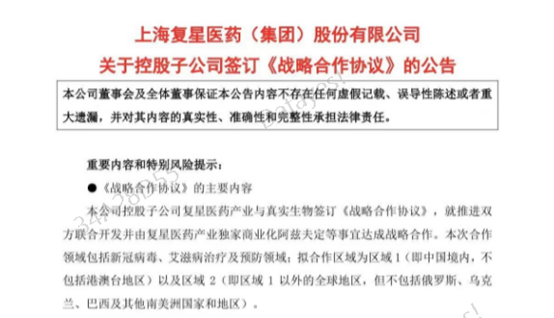 值得一提的是,就在官宣阿兹夫定上市同日,复星医药“官宣”与真实生物达成战略合作,此次合作领域包括新冠病毒、艾滋病治疗及预防领域。双方将依托各自优势,在全球开展合作。