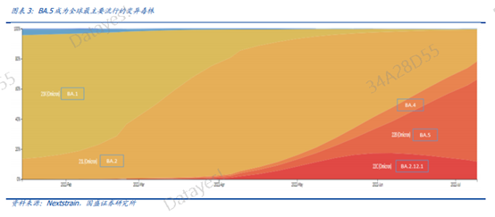 今年年初Omicron BA.1在美国单日新增确诊超过百万例,3、4月份BA.2就完成对BA.1的替代,成为全球疫情最主要流行毒株。