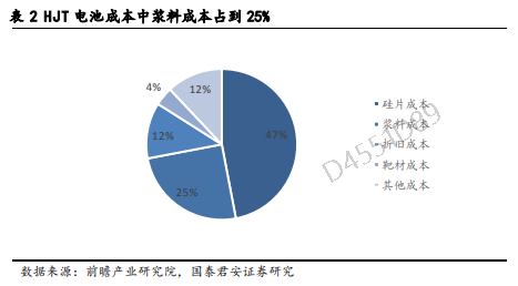 还有就是HIT的浆料采用的是低温银浆,生产工艺难度高,且需要冷链运输,价格较常规银浆要高10-20%。起初由几家外企提供,如杜邦、贺利氏、京都电子,目前国内常州聚合、苏州晶银已经突破。