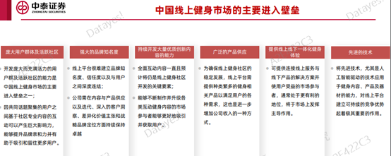 总体看这些厂商,我国线上健身市场还是存在很大的进入壁垒的。